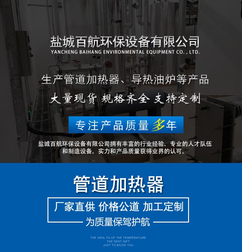 鹽城百航環(huán)保設(shè)備有限公司專業(yè)生產(chǎn)加熱設(shè)備,多數(shù)是非標(biāo)定制產(chǎn)品,特殊規(guī)格可以聯(lián)系廠家熱線:13851070705 15365668518